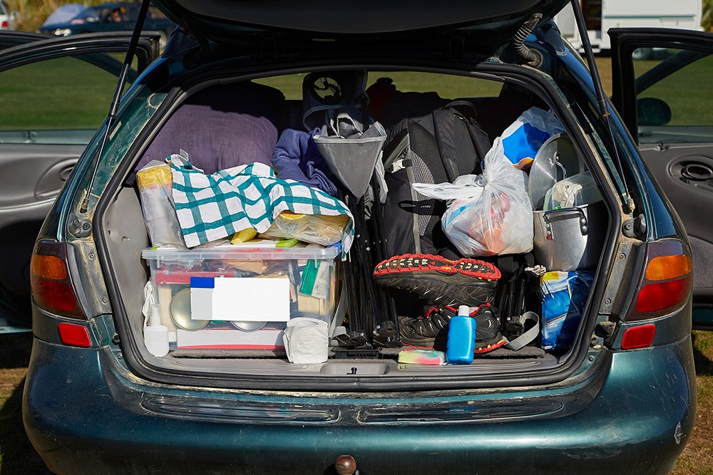 - Use small bins or organizers to store snacks, chargers, maps and other portable items to avoid cluttering the seats and car floor.